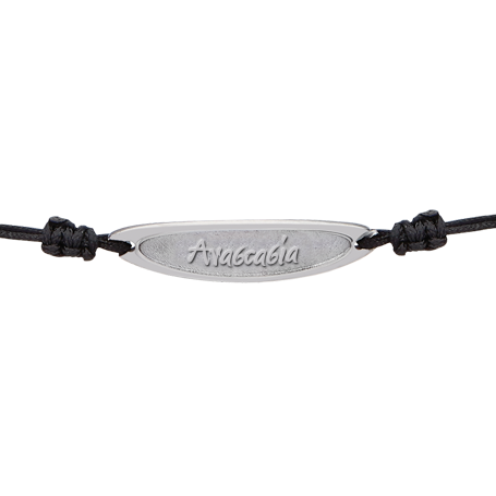 Οι ταυτότητες χεριού αποτελούν ένα κλασσικό κόσμημα και θα είναι πάντα στη μόδα. Δοκιμάστε κάτι διαφορετικό σε οβάλ: ανάγλυφη χάραξη ονόματος ή λέξης και επιλέξτε χρώμα μετάλλου και γραμματοσειρά, δημιουργώντας το δικό σας προσωπικό κόσμημα. Είναι το ιδανικό δώρο για φίλους, νονούς, γενέθλια και εορτές και είναι σίγουρο ότι θα εντυπωσιάσει. Είναι φτιαγμένη από επιροδιωμένο ασήμι 925 και συνοδεύεται από χρωματιστό σατινέ κορδόνι.