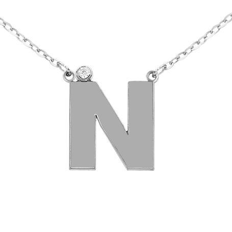 Pick your favourite letter which holds a special meaning for you and Create your own personalized Initial Necklace with Zirconia. Preview it in 7 different fonts, metal color and pendant size. Personalize it now and give away as a gift they will always remember! It’s made out of 925 Sterling Silver and comes with a Sterling Silver flat cable Chain. You can also find it in 14ct Gold with Diamond.