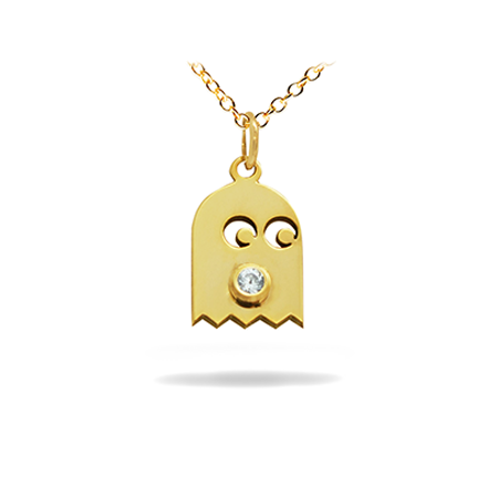 14K Solid Gold Symbol Diamond Necklace - Packman ghost